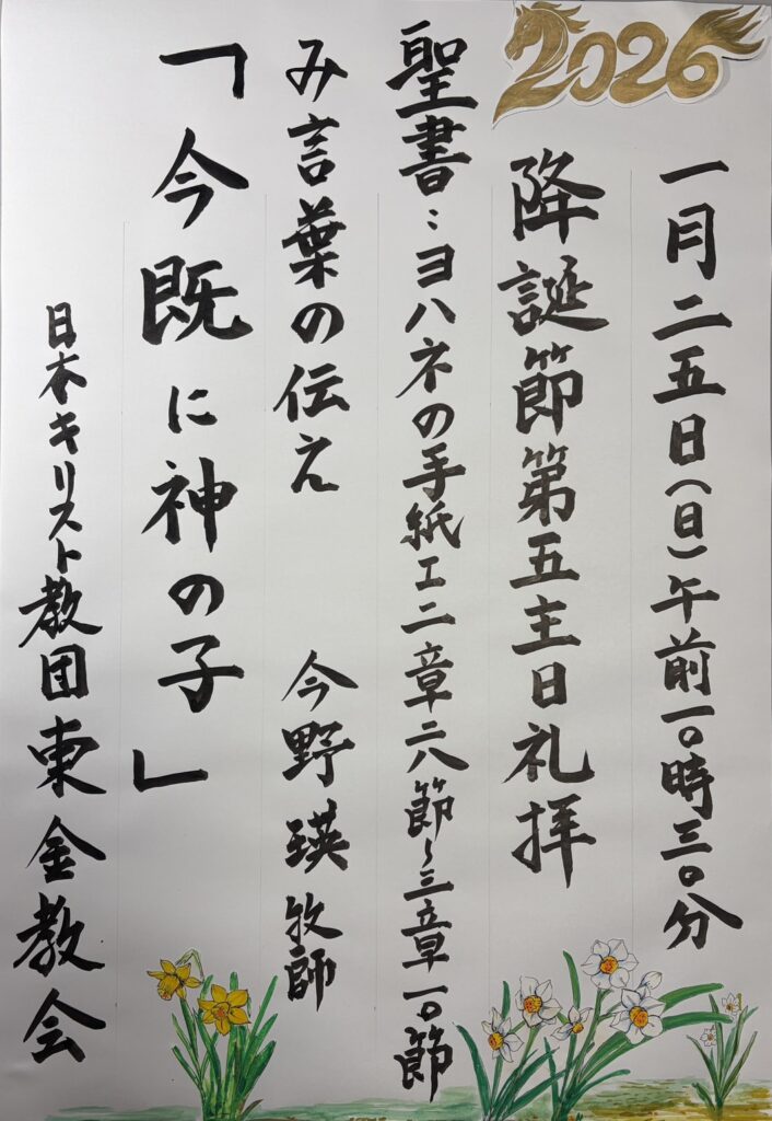 4. 2026年1月25日 降誕節第5主日礼拝案内